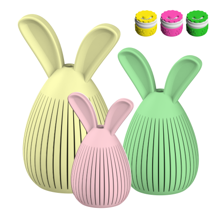 Sada Zaječí Skrýš – Pastel je souprava tří figurek ve velikostech S, M a L, udržovaných v jemných, jarních barvách. V sadě se také nachází 3 plechovky Fluonose Nano+ barevně sladěné se zajíci. To je lehká, svěží a velmi estetická verze našeho velikonočního klasika – ideální na tematické tréninky a soutěže v atmosféře „Velikonoce”.