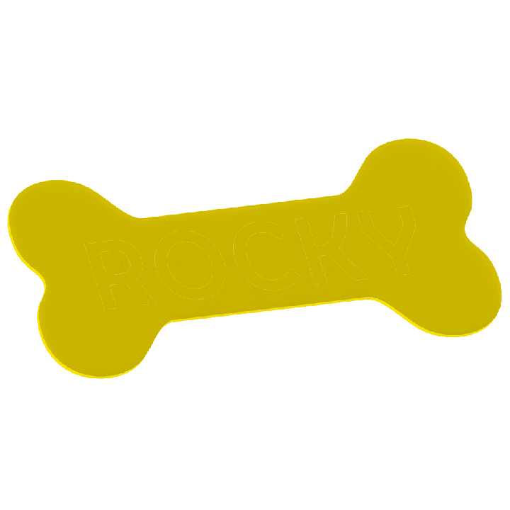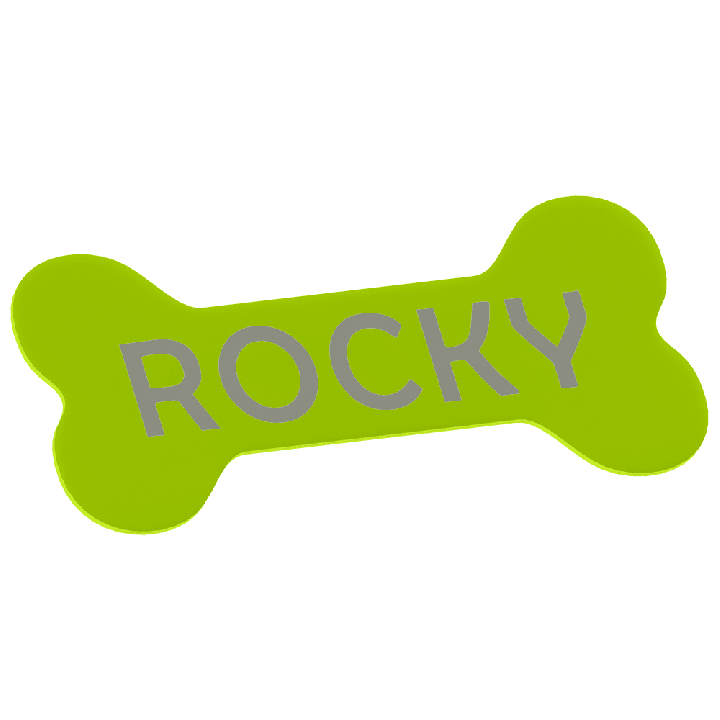 Chcete přidat výjimečný akcent do prostoru vašeho mazlíčka? Naše tabulka ve tvaru kosti s jménem psa je skvělý způsob, jak vyzdvihnout oblíbené místo vašeho čtyřnohého kamaráda! Vyrobena z odolného materiálu, dostupná v 10 krásných barvách a s možností plné personalizace – můžete přidat jméno psa nebo libovolný jiný nápis.