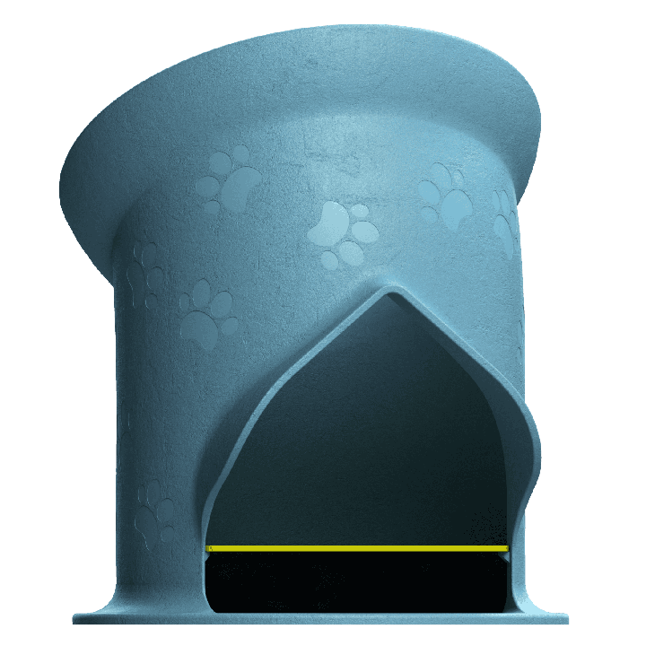 Die Ablage hat Öffnungen in Form von niedlichen Hundepfoten 🐾. Sie sehen toll aus, aber ihre Hauptfunktion ist der freie Fluss der Duftmoleküle von unten nach oben, direkt in die Nase deines Hundes. Du kannst sogar kleine Leckerlis sicher darauf legen (oder durch die hintere Öffnung hineinwerfen), ohne befürchten zu müssen, dass sie auf den Boden in die Duftdose fallen. Das ist hygienisch und superpraktisch!