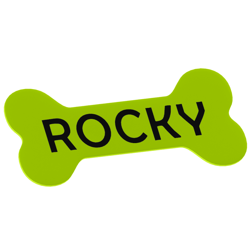 Personalisierte Hundeknochen-Schild, erhältlich in 10 Farben und 5 Größen. Ideal zum Anbringen an Türen, Hundeboxen oder Wänden.