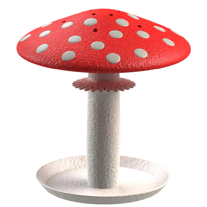 Der Hut des Pilzes hat Belüftungsöffnungen, die es dem Duft ermöglichen, sich frei zu verbreiten. Die Öffnungen befinden sich sowohl oben als auch unten – auf Wunsch können wir eine Version nur aus einer Richtung anfertigen.