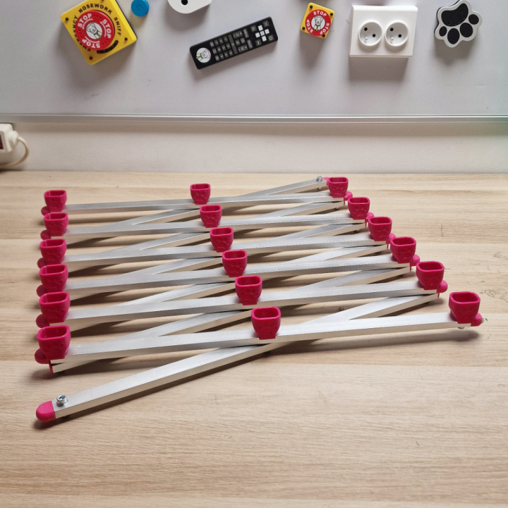 Log inAccordion Scent Strip PRO is an improved version of the folding scent strip for nosework – based on a scissor mechanism, with arms made of durable aluminum profiles and flexible baskets for Fluonose Nano+ cans. It expands to 2 or 3 meters in seconds, offering a stable and nearly indestructible scent line.