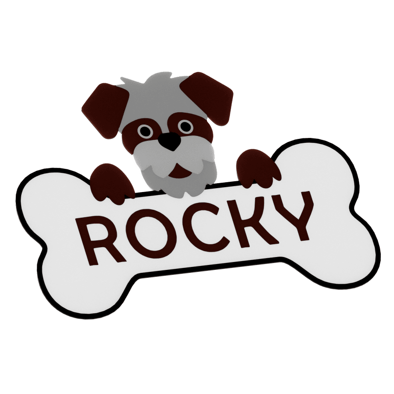 Isikupärastatud koeraluu kujuline silt Sznauceri tõule, saadaval 5 suuruses. Ideaalne uksele, kennelile või seinale kinnitamiseks.
