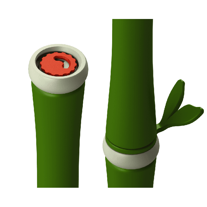 Les segments de bambou se connectent entre eux par des filetages solides, permettant une configuration stable et rapide de l'ensemble. À l'extrémité de chaque segment se trouve un emplacement pour la boîte à scent Fluonose Nano+ (ou d'autres boîtes d'un diamètre allant jusqu'à 13 mm). L'insert modulaire pour le pot mesure 20x20 cm, il peut être utilisé indépendamment ou combiné avec d'autres modules pour créer une plus grande "prairie olfactive".