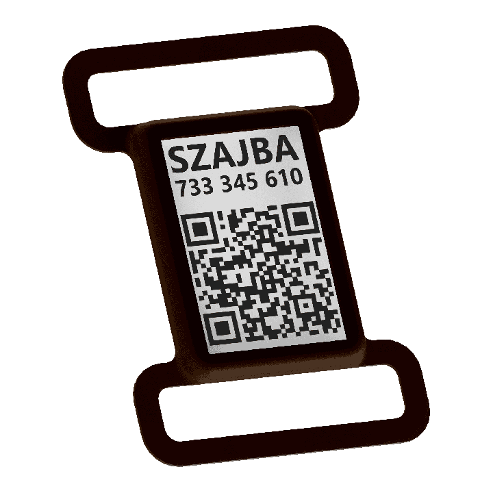 Stílusos nyakörv medál kutya névével és QR kóddal – tökéletes a kedvenced biztonságáért! Az internetes névjegynek köszönhetően, aki megtalálja a kutyát, gyorsan kapcsolatba léphet veled. A medál időjárásálló és lehetővé teszi az adatok egyszerű frissítését.