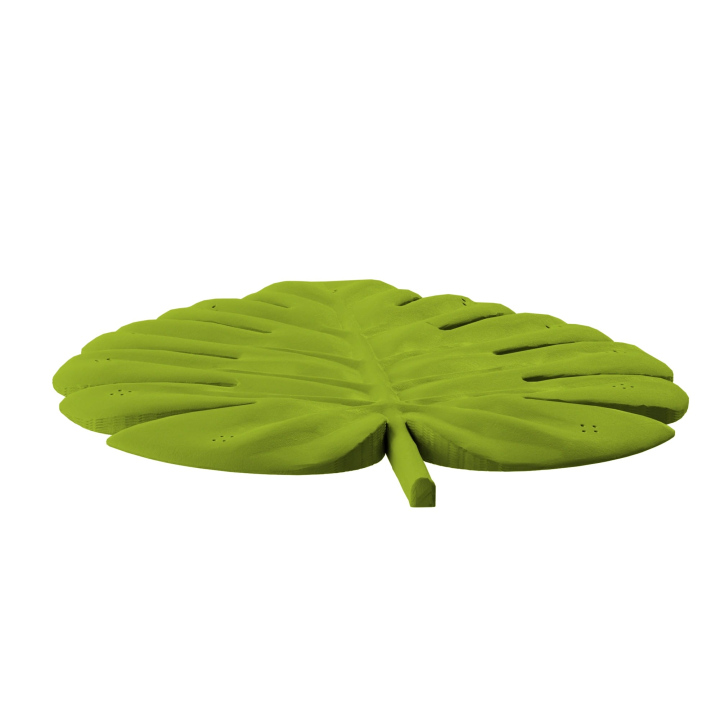 A Monstera levél ugyanabból az erős anyagból készült, mint a Fluo.Dog kollekció többi levélmásolata. Valósághű 3D textúrával, matt felülettel és lapos aljjal rendelkezik, amely stabilitást biztosít a talajon. A levél szerkezetében található beépített nyílások lehetővé teszik az illat fokozatos kibocsátását a felszerelt dobozokból. Ez egy olyan termék, amely ötvözi az esztétikát és a funkcionalitást – tökéletesen alkalmas edzésekhez, akár kültéren, akár beltéren.