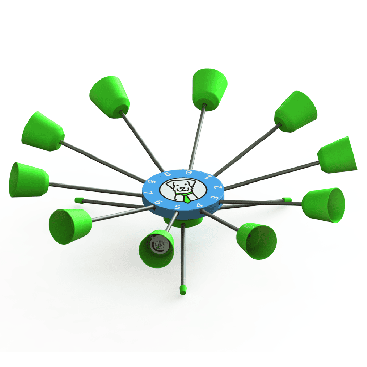 - Óvatosan mozgásba hozd a karusszelt, kézzel forgatva. A kutyának mozgás közben kell megtalálnia az illatot, ami növeli a feladat nehézségét.