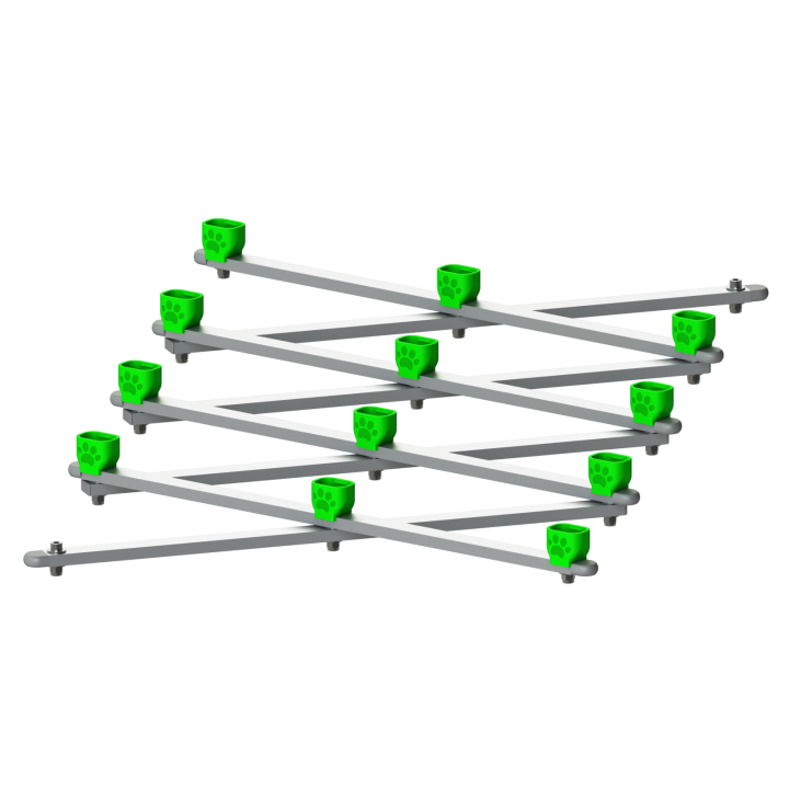 Akkord Szag PRO a fejlettebb változata a hajtogatható illatcsíknak noseworkhoz – ollós mechanizmusra építve, tartós alumínium profilokból készült karokkal és rugalmas Fluonose Nano+ konzervkosarakkal. 2 vagy 3 méterre nyúlik pár másodperc alatt, stabil és szinte elpusztíthatatlan illatsort kínálva.