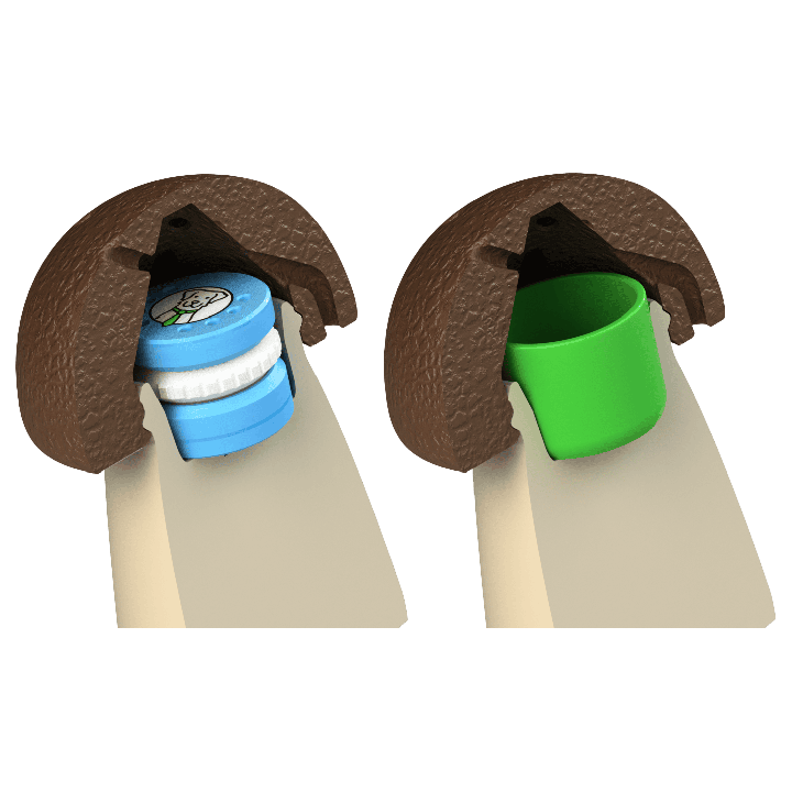 Ogni fungo è composto da due parti: il cappello e il gambo. Dopo aver svitato il cappello, si accede all'interno, dove è possibile inserire: