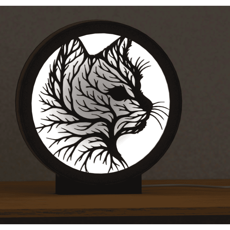 Elegante lampada LED con un motivo unico di cespuglio di gatto – un'aggiunta ideale a qualsiasi ambiente! Disponibile in tre varianti di luce, con possibilità di controllo remoto.
