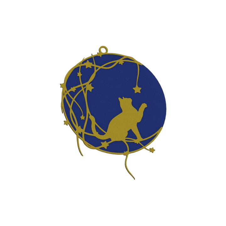 Ziemassvētku rotājumu komplekts ar kaķi uz mēness - tumši zils ar zelta rakstu