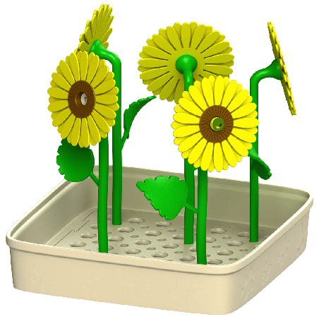 Set van 5 zonnebloemen voor scent training - elk met een houder voor de Fluonose Nano+. Je kunt ze installeren in de module van de weide en ze vrij draaien om een realistische geurige weide te creëren!