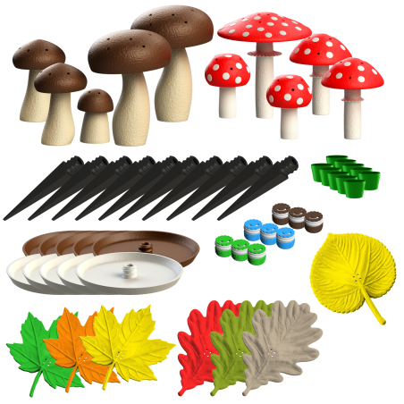 De grootste reukset in ons assortiment! 🐾 Creëer een compleet bosecosysteem door 10 paddenstoelen en 7 realistische bladeren te combineren. Dat zijn maar liefst 17 unieke verstopplaatsen voor geuren in één doos!