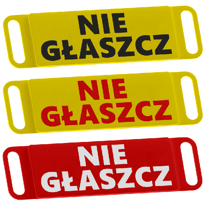 Gummideksel til halsbånd med teksten "IKKE KLAP" – godt synlig advarsel for omgivelsene! Motstandsdyktig mot værforhold, tilgjengelig i forskjellige størrelser, enkel å montere og rengjøre.