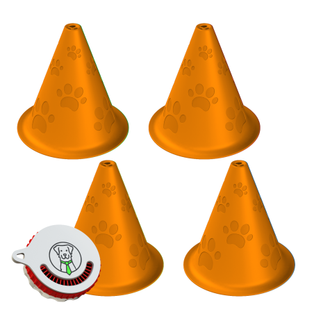 • Kolorowa atrapa pachołka do profesjonalnego szkolenia węchu – doskonała do budowania motywacji psa.