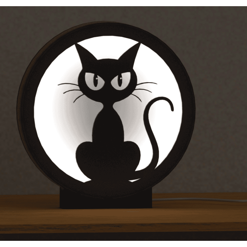 Procurando uma decoração original que ilumine o seu ambiente? A luminária LED com o tema de gato preto é a escolha ideal! 🐱 A elegante silhueta do gato contra a luz traz um clima mágico para qualquer cômodo – perfeita para amantes de animais e acessórios de design.