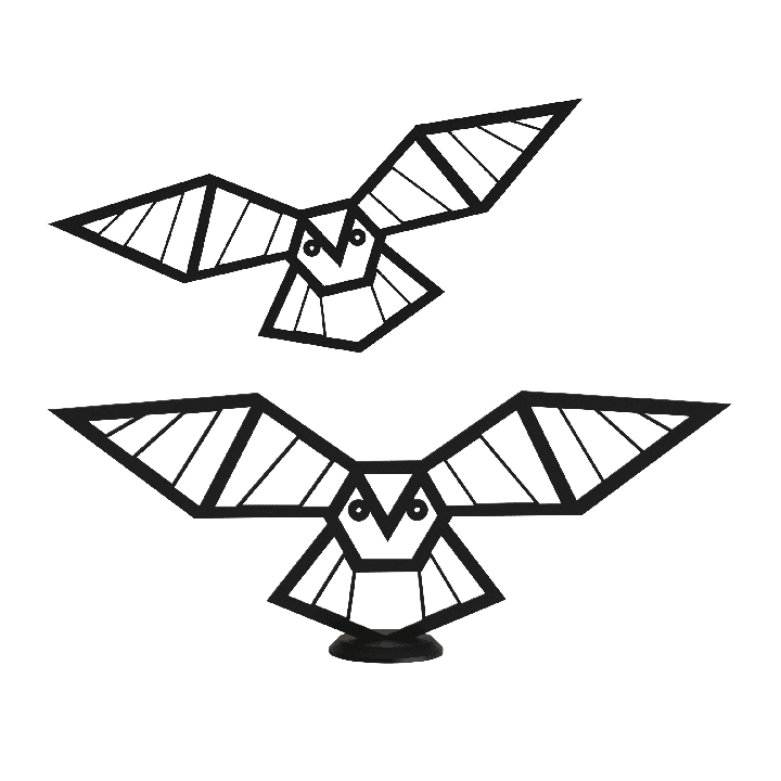 Eleganten okras v obliki sove – idealen za postavitev na mizo ali obesitev na steno! Vključuje stojalo, ki ga je mogoče enostavno odstraniti. Izdelan je iz trpežne črne plastike, razpon kril pa je 33,8 cm.