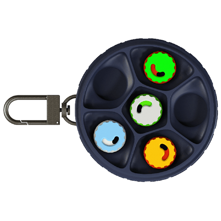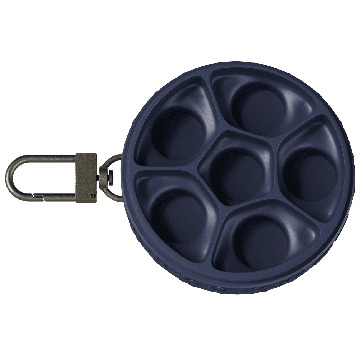 Celota ima obliko kompaktne ploščice s premerom 5,3 cm in debelino le 1,5 cm – torej ravno prav, da sprejme kar šest pločevink Fluonose Nano+. Vsaka pločevinka ima svojo ločeno komoro, tako da lahko brez skrbi mešate prazne in dišeče pločevinke – brez tveganja kontaminacije.