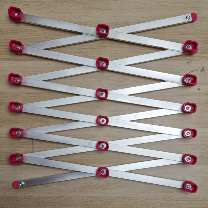 Log inHarmonijka Węchowa PRO je vylepšená verzia skladanej listvy zapachovej na nosework – založená na mechanizme nožnic, s ramenami z odolných hliníkových profilov a flexibilnými košmi na plechovky Fluonose Nano+. Rozťahuje sa na 2 alebo 3 metre za niekoľko sekúnd, ponúkajúc stabilný a takmer nezničiteľný rad vôní.