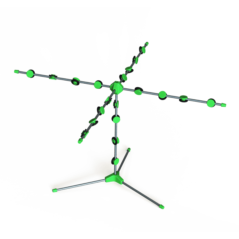 - 🔗 1× krížový spoj: srdce konštrukcie, ktoré umožňuje nastavenie ramien v akomkoľvek smere.