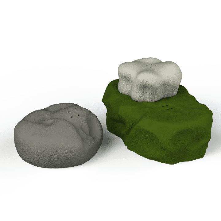 • 🪨 Platt yta på toppen – gör det möjligt att ställa en andra sten och skapa flerlagers gömmor.