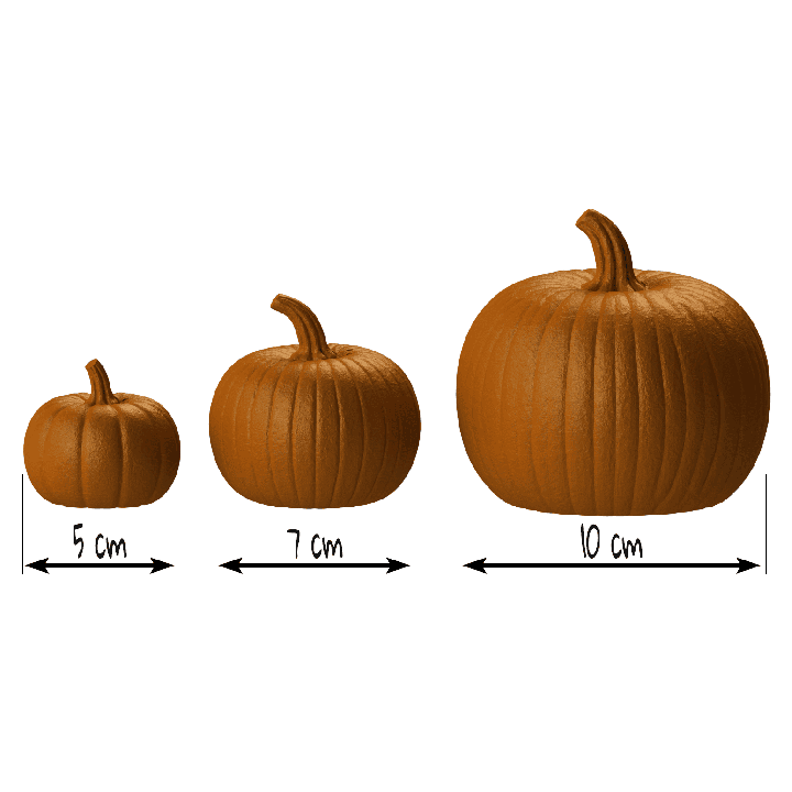 Гарбузи доступні в трьох розмірах, які ти можеш купити окремо або в комплекті. Менший ідеально підходить для навчання розрізнення запахів, середній – для роботи вдома або в саду, а найбільший – для тренувань на відкритому повітрі або роботи в траві. Всі виготовлені з міцної гуми в класичному помаранчевому кольорі, стійкої до погодних умов та легкої в очищенні.
