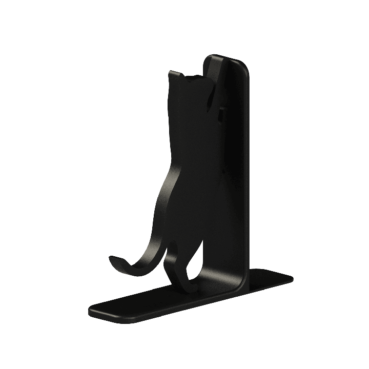 Урізноманітніть свою книжкову полицю цією унікальною підпіркою для книг! Кіт, що стоїть на задніх лапках, спираючись на книги, приносить неповторний шарм до інтер'єру, додаючи йому тепла і гумору. Виготовлена з міцного пластику в елегантному чорному кольорі, підпірка є як функціональною, так і декоративною – ідеальна для будь-якого типу інтер'єру.